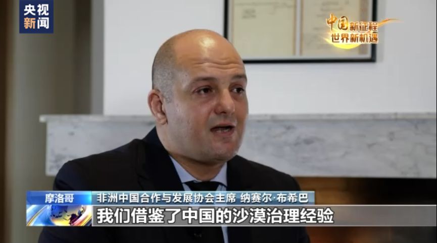 非洲中國(guó)合作與發(fā)展協(xié)會(huì)主席 納賽爾·布希巴:我回摩洛哥以后,借鑒了中國(guó)的沙漠治理經(jīng)驗(yàn),聯(lián)合了中國(guó)北京、蘇州和成都的優(yōu)秀企業(yè)家以及資深專家,在摩洛哥東南部伊爾福德綠洲設(shè)立了“中非鹽水農(nóng)業(yè)示范農(nóng)場(chǎng)”。