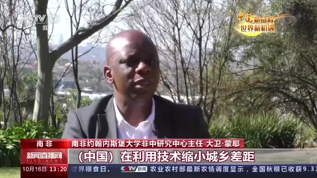 南非約翰內斯堡大學非中研究中心主任 大衛·蒙耶:我們注意到,(中國)在利用技術縮小城鄉差距。通過增加技術使用以及電子商務的興起,我們看到生活在農村地區的人們能夠使用電子設備,在市場上更容易地出售他們的農產品。