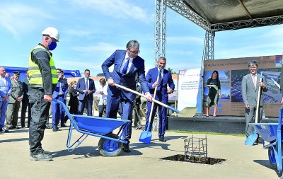 2021年9月9日,塞爾維亞總統武契奇在貝爾格萊德為歐洲地區首家中國疫苗工廠奠基。新華社發