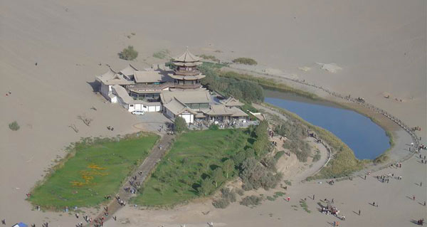日益變小的月牙泉。舉世聞名的甘肅敦煌月牙泉在上世紀(jì)70年代占地22畝,水最深處達(dá)9米。由于地表水減少、地下水下降,月牙泉如今水面僅有8畝,水深不足3米。盡管當(dāng)?shù)卣扇《喾N措施進(jìn)行補救,效果不大。據(jù)有關(guān)專家介紹,如不采取更加有力措施進(jìn)行搶救,30年后月牙泉將面臨不復(fù)存在的危險。