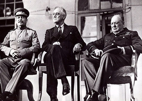 資料圖片:二戰時期的斯大林(左)羅斯福(中)與丘吉爾。