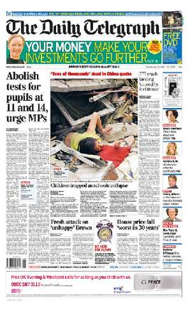 英國《每日電訊報》頭版:學校坍塌,學生被困