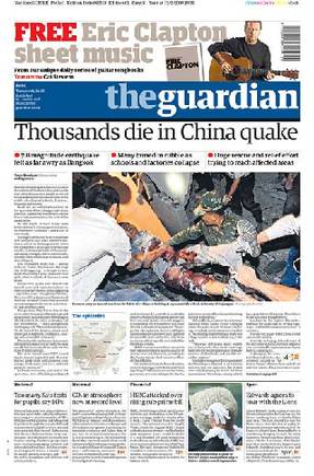 英國《衛報》:中國大地震數千人遇難