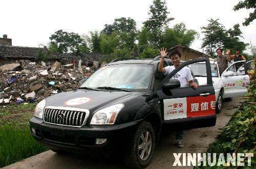 6月6日,江淮抗震救災(zāi)前線指揮部派往四川地震災(zāi)區(qū)新聞中心的三位志愿者車手,駕駛江淮越野車送媒體記者前往地震重災(zāi)區(qū)安縣鄉(xiāng)村途中。 “伸出你的手,初次相識已是朋友”。不為名,不圖利,只愿真情常駐人間;不怕苦,不畏難,只望陽光溫暖心田。將我們最美好的祝愿和最真摯的感謝都譜寫成歌,送給無私的志愿者。如果你也躍躍欲試,就看看這些抗震救災(zāi)中的志愿者的故事,他們是快樂的,這是他們無怨無悔的選擇。 新華社記者 陳海寧 攝