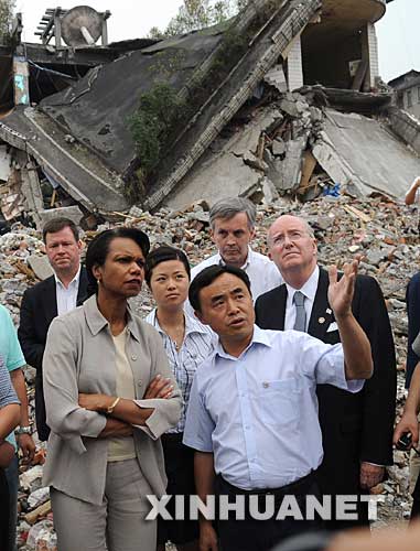 29日,賴斯對四川地震災(zāi)區(qū)進行了不到四個小時的訪問。賴斯是迄今為止訪問中國地震災(zāi)區(qū)的美國最高官員,這也是她年內(nèi)第二次訪問中國的第一站。
