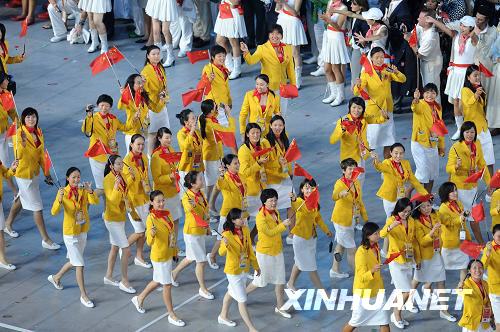 8月8日,第29屆夏季奧林匹克運(yùn)動(dòng)會(huì)在北京國(guó)家體育場(chǎng)隆重開(kāi)幕。這是中國(guó)代表團(tuán)入場(chǎng)。新華社記者郭大岳攝