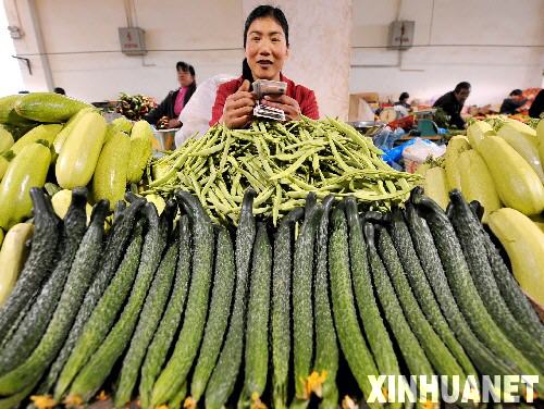 10月20日,一名商販在銀川市一家菜市場攤位前數錢。 據國家統計局當日發布數據顯示,2008年前三季度,我國居民消費價格總水平(CPI)同比上漲7.0%,漲幅比上半年回落0.9個百分點。9月份CPI同比上漲4.6%,比上月回落0.3%。 新華社記者 王鵬 攝
