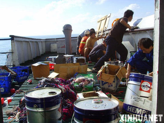 12月17日,在亞丁灣水域,海盜登上“振華4”號貨輪甲板。 新華社發
