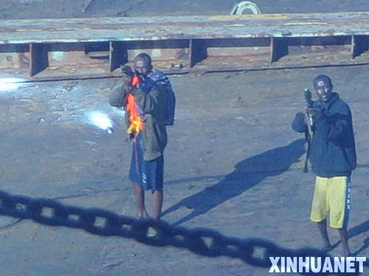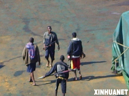 12月17日,在亞丁灣水域,海盜登上中國“振華4”號貨輪甲板。 新華社發
