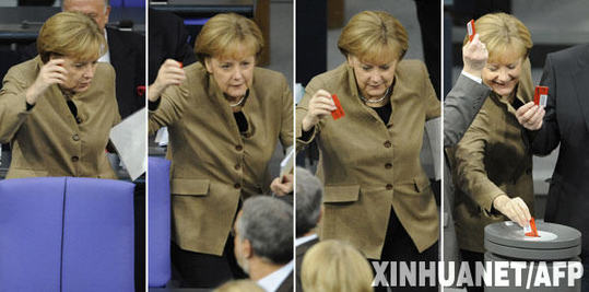 這是12月19日德國總理默克爾在聯邦議院參加投票的拼版照片。當日,德國聯邦議院以多數票批準德國聯邦國防軍參與歐盟在索馬里海域打擊海盜的“阿塔蘭塔”行動,德國海軍將首次出兵打擊海盜。 新華社/法新