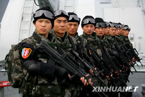 12月25日,海軍特戰(zhàn)隊員在軍艦上進行反海盜訓練。 當日,即將隨軍艦出征亞丁灣、索馬里海域執(zhí)行護航任務的中國海軍特戰(zhàn)隊員,在“海口”號導彈驅(qū)逐艦上進行反海盜訓練。這些優(yōu)中選優(yōu)的特戰(zhàn)隊員個個都是訓練尖子,具有較強的特種作戰(zhàn)能力。他們已在心理、體力和技能上進行了充分準備,進行了潛水、艦體攀爬、射擊等方面的強化訓練,每個人都能熟練使用多種武器,并在空手情況下一人可對付數(shù)人。新華社記者 查春明攝