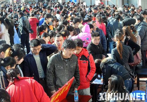 3月6日,北京朝陽區在王四營鄉舉辦專場招聘會,吸引了眾多農民工和失業人員參加。 新華社記者羅曉光攝