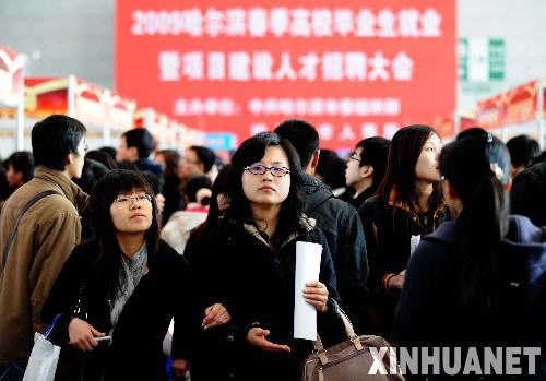 3月7日,哈爾濱市應(yīng)聘者在尋找合適的就業(yè)崗位。 新華社記者 王建威攝