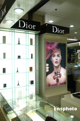 2008年日,美國演員莎朗·斯通在法國戛納電影節接受采訪時,竟稱四川大地震是一件有趣的事情,還沒人性地稱其為“報應”。此言一出,引來民憤連連,立刻發出“抵制莎朗·斯通”的倡儀。近日,迪奧中國發表聲明,撤銷及停止任何與莎朗-斯通合作。圖為在商店內的迪奧展臺已經更換了宣傳海報。中新社發 富田 攝