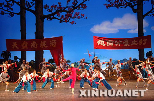 9月25日,中央芭蕾舞團的演員在國家大劇院歌劇院表演《紅色娘子軍》。新華社記者羅曉光攝