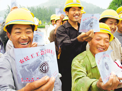 在濟(jì)南務(wù)工的5000名外地農(nóng)民加入當(dāng)?shù)毓?huì)組織,興奮不已。江 浩攝
