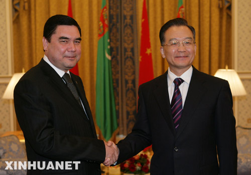 11月4日,國務院總理溫家寶在阿什哈巴德同土庫曼斯坦總統別爾德穆哈梅多夫舉行會談。 新華社記者黃敬文攝