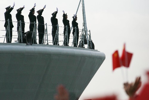 中國駐日大使崔天凱、中國駐日使館國防武官徐京明少將、日本海上自衛(wèi)隊(duì)橫須賀地方隊(duì)總監(jiān)半田謙次郎中將、第一護(hù)衛(wèi)艦群司令河村正雄少將等中日兩國有關(guān)部門官員,以及日中友好團(tuán)體、在日華僑華人、山手中華學(xué)校小學(xué)生、留學(xué)生,中資機(jī)構(gòu)代表等到碼頭為“深圳”號導(dǎo)彈驅(qū)逐艦送行。