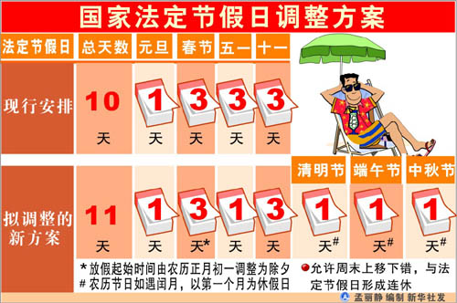 圖表:國家法定節假日調整方案 新華社發 |