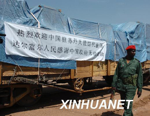 資料圖片:10月23日,在蘇丹南達爾富爾州首府尼亞拉,一名士兵在滿載中國援助物資的火車車廂旁執勤。當天,中國政府向蘇丹西部達爾富爾地區提供的一批援助物資被移交給當地政府。這批援助物資包括發電機、抽水機以及醫療器械等。新華社記者陳鐸攝