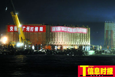 結(jié)束了3天3夜的岸邊等候 海上整體打撈工作劃句號