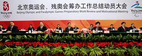 新華網(wǎng)北京1月8日電(記者汪涌、張旭)北京奧運(yùn)會(huì)、殘奧會(huì)籌辦工作總結(jié)動(dòng)員大會(huì)8日在北京召開(kāi)。中共中央政治局委員、北京市委書記、北京奧組委主席劉淇出席會(huì)議,并作了關(guān)于北京奧運(yùn)會(huì)、殘奧會(huì)2007年籌辦工作總結(jié)及2008年重點(diǎn)工作報(bào)告。國(guó)務(wù)委員、北京奧組委第一副主席陳至立主持會(huì)議。