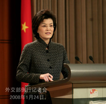 2008年1月24日下午,外交部發(fā)言人姜瑜舉行例行記者會,就伊核問題六國外長會、蘇丹達(dá)爾富爾問題、中越關(guān)系等回答記者提問。