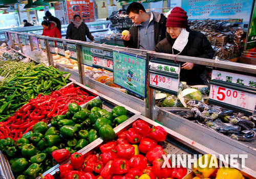 1月27日,顧客正在寧夏銀川一家超市選購蔬菜和水果。1月26日,寧夏臨時價格干預措施啟動,對影響較大的8家企業實行提價申報,對17家企業經營的商品實行調價備案,品種涉及面粉、大米、食用植物油、純牛奶、肉類、雞蛋等。不少市民反映,出臺臨時價格干預措施有利于穩定節日期間市場物價,遏制追風漲價,切實減輕百姓消費負擔。新華社記者 李紫恒 攝