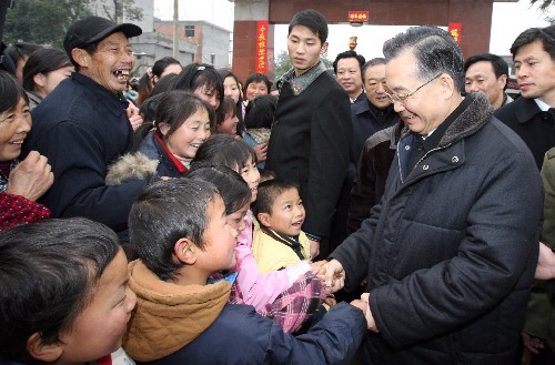 資料圖片:2月6日,中共中央政治局常委、國務(wù)院總理溫家寶結(jié)束貴州的考察工作,立即趕到江西災(zāi)區(qū),指導(dǎo)抗災(zāi)救災(zāi)和災(zāi)后恢復(fù)生產(chǎn)工作,看望慰問干部群眾。這是溫家寶在撫州市臨川區(qū)云山鎮(zhèn)圳上村看望慰問受災(zāi)村民。新華社記者 姚大偉 攝