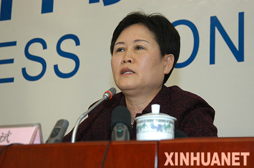北京奧組委市場開發部部長袁斌回答記者提問 新華網 張泳攝