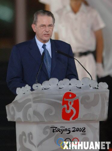 圖為2007年8月8日,國際奧委會主席羅格在活動中致辭。當晚,北京2008年奧運會倒計時一周年慶祝活動在天安門廣場舉行。 新華社記者羅曉光攝