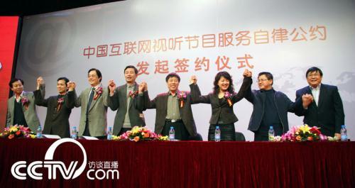 新華網消息:2008年2月22日,新華網、人民網、央視國際、中國網、國際在線、中青網、中國經濟網、中國廣播網等8家中央網絡媒體,在京舉行《中國互聯網視聽節目服務自律公約》簽約儀式。國家廣電總局副局長趙實、信息產業部副部長蔣耀平,以及國務院新聞辦等相關主管部門的領導,和來自全國40余家開展互聯網視聽節目服務網站的代表參加了儀式。