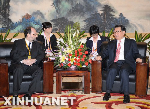 2月23日,中共中央政治局常委李長(zhǎng)春在廣州會(huì)見(jiàn)國(guó)際乒聯(lián)主席沙拉拉。新華社記者 馬占成 攝