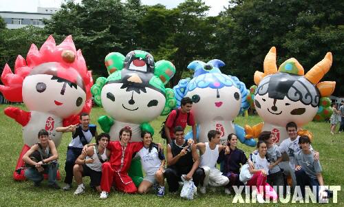 2月17日,在巴西首都巴西利亞,當(dāng)?shù)厍嗄昱c充氣福娃合影。當(dāng)日,中國新年慶祝活動在巴西利亞新命名的“世界和諧廣場”舉行,中國駐巴西大使陳篤慶、巴西利亞市市長庫提尼奧與觀眾們一起觀看了舞獅、功夫和中國歌舞等表演。 新華社記者趙焱攝
