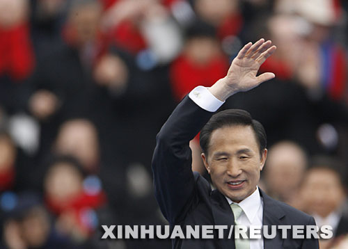 25日上午,韓國新總統李明博在韓國國會廣場舉行就職儀式,在國內外5萬名貴賓前宣誓,正式成為韓國第十七任總統。