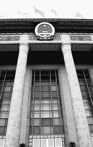 人民大會堂國徽高懸期待代表。 (資料照片)