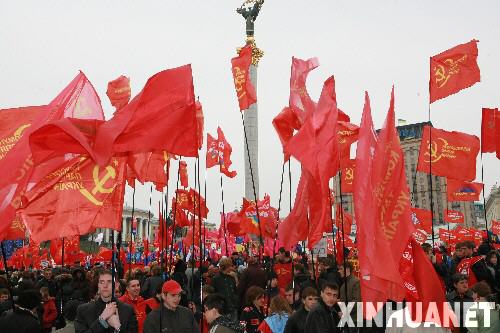 3月31日,在美國總統(tǒng)布什到訪前,烏克蘭左翼黨派在首都基輔市中心舉行大規(guī)模群眾集會,反對烏克蘭加入北約。 新華社記者宋宗利攝