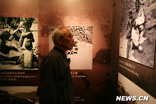 一位老者在西藏歷史與封建農奴制展區的舊西藏圖片前若有所思。 新華網 馬軼群 攝