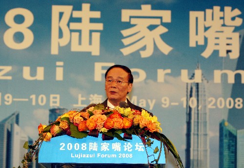 5月9日,中共中央政治局委員、國務(wù)院副總理王岐山出席論壇開幕式并演講。 當(dāng)日,“2008陸家嘴論壇”在上海開幕。出席本次論壇的中外金融界重要人士共有100多名。中國人民銀行行長周小川和上海市市長韓正擔(dān)任本次論壇聯(lián)合主席,論壇主題是“世界格局中的中國金融”。 新華社記者 張明 攝