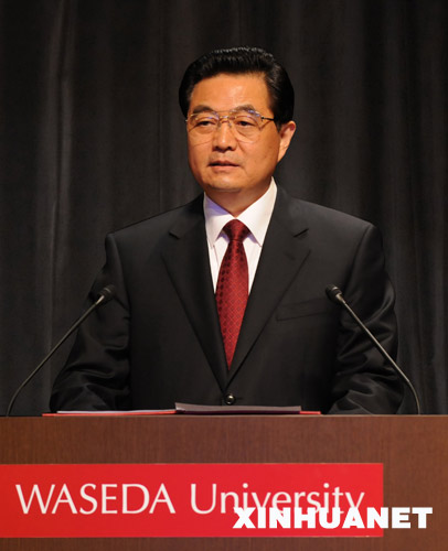 5月8日,國家主席胡錦濤在日本東京的早稻田大學(xué)發(fā)表重要演講。 新華社記者李學(xué)仁攝