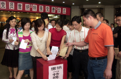 資料圖片:南方報(bào)業(yè)傳媒集團(tuán)黨委組織全體黨員開展繳納“特殊黨費(fèi)”向?yàn)?zāi)區(qū)獻(xiàn)愛心活動(dòng),得到廣大黨員的積極響應(yīng) 何洪偉 攝(中國新聞傳媒網(wǎng))