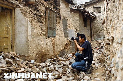 2008年5月18日,新華社攝影記者李濤在地震重災區――北川縣采訪。 新華社發
