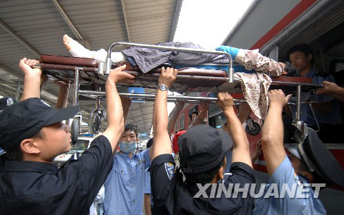 新華網成都5月25日電(記者孟娜 周英峰 肖林)25日上午10時40分,成都火車站。10輛運載第一批汶川地震傷員的急救車駛進站臺,“救22”次列車和整個站臺立即忙碌起來。