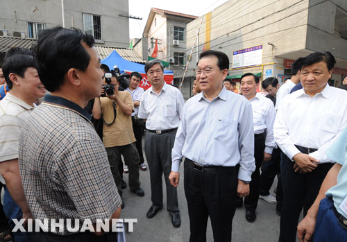 隨后,李長春頂著烈日趕往德陽市羅江縣金山鎮。他來到一個受災群眾安置點,關切地詢問受災群眾吃飯、飲水、居住、上學等方面情況。他囑咐當地干部要深入細致地做好思想政治工作,特別要做好遇難者家屬和受傷人員的心理安撫和思想疏導工作,幫助他們排憂解難,堅定戰勝災難的信心。