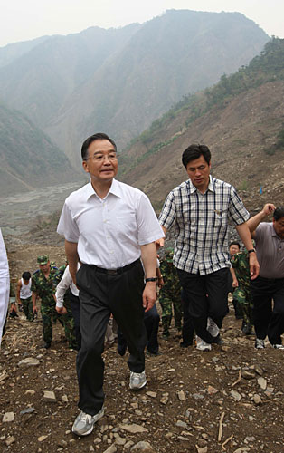 隨后,溫家寶前往唐家山堰塞湖搶險(xiǎn)指揮部,看望水利專(zhuān)家,現(xiàn)場(chǎng)指揮部署除險(xiǎn)工作……