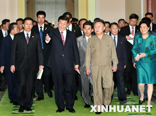習近平表示,中朝傳統友誼是兩國老一輩領導人親手締造和培育,兩國人民用鮮血凝成的。中朝兩國人民始終相互理解、相互同情、相互支持、相互幫助,中朝友誼歷經風雨、牢不可破。進入新世紀,中朝關系繼續快速發展,有力地維護了兩國共同利益,也為本地區和平與發展做出了積極貢獻。不斷鞏固和發展中朝傳統友好合作關系是中國黨和政府堅定不移的戰略方針。我們愿同朝方一道,繼續本著“繼承傳統、面向未來、睦鄰友好、加強合作”的精神,保持高層交往,深化經貿合作,搞好明年“中朝友好年”活動,就雙方共同關心的地區和國際事務加強協調,使中朝關系在新形勢下煥發出更大生機和活力。