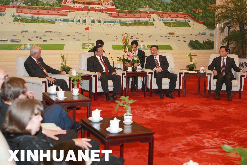 6月19日,全國人大常委會委員長吳邦國在北京人民大會堂會見出席第五屆亞歐議會伙伴會議各代表團團長。 新華社記者鞠鵬攝