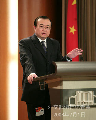 2008年7月1日下午,外交部發言人劉建超舉行例行記者會,就胡錦濤主席將出席八國集團同有關國家領導人對話會議、六方會談、津巴布韋局勢、中央有關部門與達賴私人代表接觸等答問。