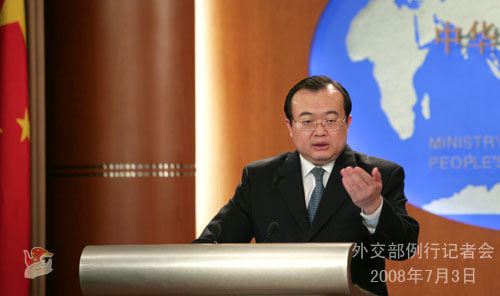 2008年7月3日下午,外交部發言人劉建超舉行例行記者會,就墨西哥總統訪華、蒙古局勢、六方會談、外國領導人出席北京奧運會等答問。