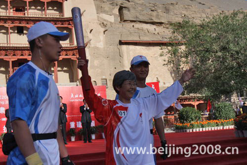 敦煌傳遞將有120名火炬手、26名護(hù)跑手參加,首棒火炬手是素有“敦煌女兒”之稱的敦煌研究院院長(zhǎng)樊錦詩(shī)。樊錦詩(shī)現(xiàn)任敦煌文物研究院院長(zhǎng),主要致力石窟考古、石窟科學(xué)保護(hù)和管理。在傳遞之前樊錦詩(shī)表示:“奧運(yùn)火炬?zhèn)鬟f是一個(gè)交流和傳遞的過程,敦煌是中外文化交流的地方,也是文化傳播的地方,奧運(yùn)火炬的到來,傳播了敦煌文明和中華文明,能傳遞奧運(yùn)圣火我感到無比自豪。”